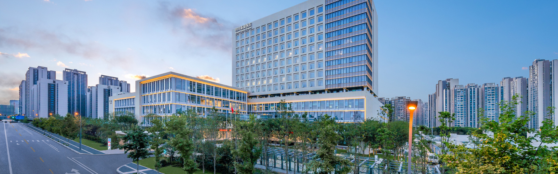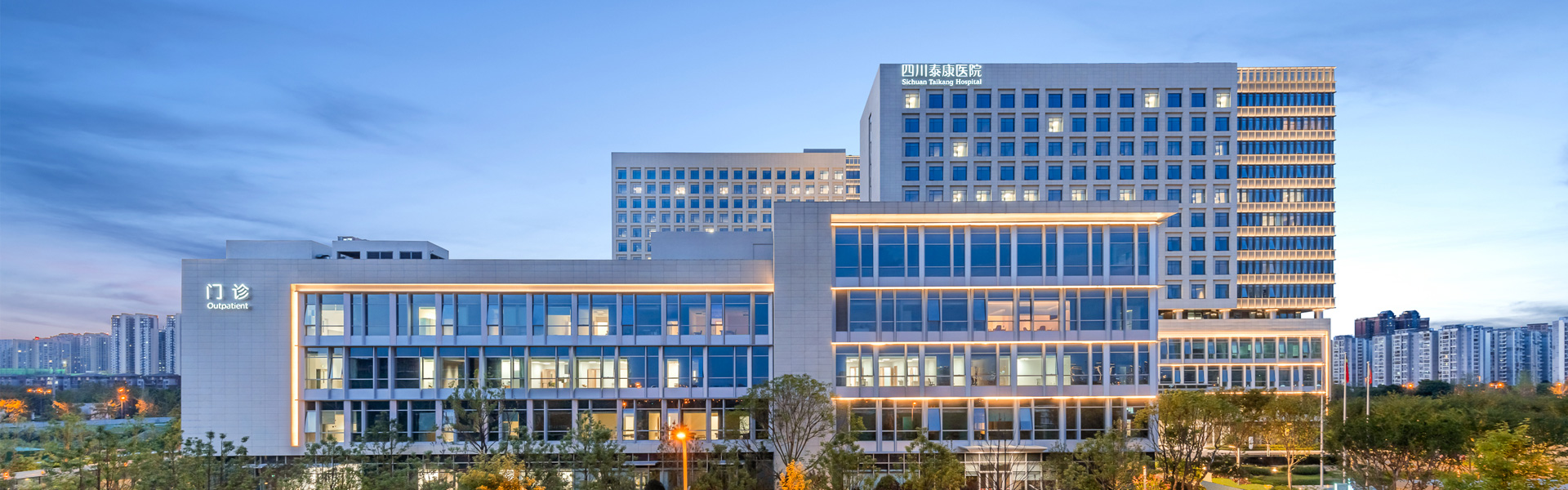 四川泰康医院有限公司(简称四川泰康医院)位于四川天府新区锦江生态带牧华路与益州大道交界处,华阳街道祥鹤一街881号,按照国内三级甲等综合医院设置标准规划,总建筑面积18.5万平米,规划总床位1001张。医院“嵌入式”布局了一家以护理型为主的高品质养老社区——泰康之家·锦官府,组成了泰康天府医养园区,总投资金额超40亿元,将打造成为西南地区首个“医、教、研、养、康”五位一体的超级版医养综合体。