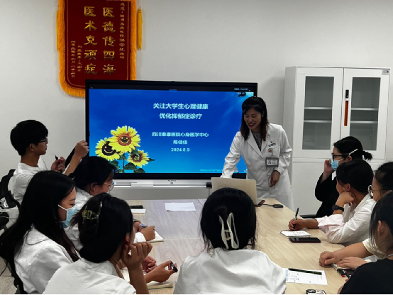 8月9日下午14:30-15:30,四川泰康医院心身医学中心的陈佳佳医师对在院实习生开展了一场题为《关注大学生心理健康-优化抑郁症治疗》的专题讲座。