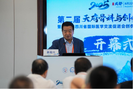 四川省国际医学交流促进会副会长张庆营在发言中提到,当前老龄化社会背景下骨科疾病诊疗面临的挑战日益增多,需通过多学科协作与科技转化提升整体医疗服务质量。