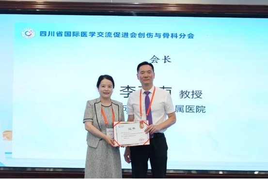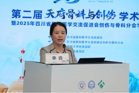 四川省国际医学交流促进会李霞副秘书长代表协会致辞,充分肯定创伤与骨科分会过往取得的成就。她介绍,医促会作为5A级社会组织,以“服务专家、服务临床”为宗旨,拥有专业的管理团队和完善的合规体系,并依托基金会、英文医学期刊矩阵等平台,可为分会提供科研申报、人才培养与成果转化等多维度支持。她表示,医促会将持续优化资源配置,全力支持创伤与骨科分会在学术品牌建设、基层帮扶、科研创新等领域实现新突破。