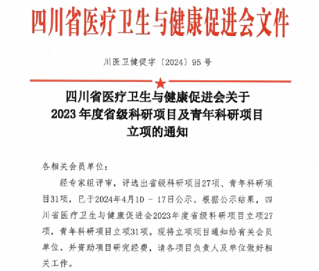 近日获悉,四川省医疗卫生与健康促进会发布关于2023年度青年科研项目立项通知,我院护理部唐淑蓉、李彦佳等团队负责的项目《基于循证的护士医学叙事能力干预方案的构建及应用研究》被成功立项。