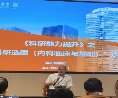 2024年5月29日下午16:30,四川泰康医院科教部组织的第一期“科研能力沙龙”活动在B1芙蓉厅顺利举办。本期活动主题为“科研选题”,特邀消化内科赵晓晏、神经内科范文辉、重症监护室王涛三位主任为讨论嘉宾,吴少平副院长担任主持。