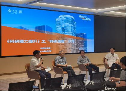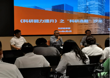 2024年6月6日下午16:00,四川泰康医院科研教学部组织的第二期“科研能力沙龙”活动在B1芙蓉厅顺利举办。本期活动主题为“科研选题”,特邀中医科周建伟主任、骨科李开南主任、健康管理中心魏亮教授为讨论嘉宾,科研教学部负责人吴爵主持会议,吴少平副院长参会旁听点评。