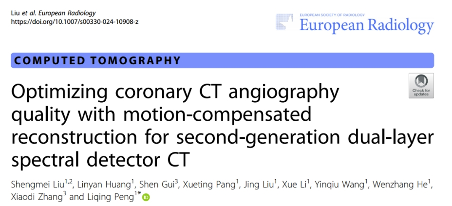 最新获悉:我院放射科刘胜梅医师今年以第1作者发表SCI论文“Optimizing coronary CT angiography quality with motion-compensated reconstruction for second-generation dual-layer spectral detector CT”,该论文发表于 European Radiology (Q1区,IF:4.7)该论文通过研究第二代双层光谱探测器计算机断层成像(DLCT)的运动补偿重建(MCR)算法对冠脉CTA图像质量的改善效果,并评估心率对该算法运动校正效果的影响。研究表明该算法显著改善了冠状动脉CTA的主观图像质量、可解释性和客观图像质量,尤其是在心率较高的患者中。 四川泰康医院科研教育部高度重视科研制度、平台、人才体系建设,全力服务与支持全院科研工作者,重视职称晋升渠道、课题申报渠道拓展,坚持全力服务医险结合、医养融合目标,努力推进医教研一体化高品质医疗品牌建设。