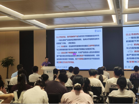 吴少平副院长总结了培训内容,向参训者提出了后续深入学习、积极实践的相关要求,同时分阶段回顾性评价了我院科技工作的状况,强调了我院启动“临床研究”工作的重要性,并对职能部门推进该工作的环节与质量要求提出了具体要求。