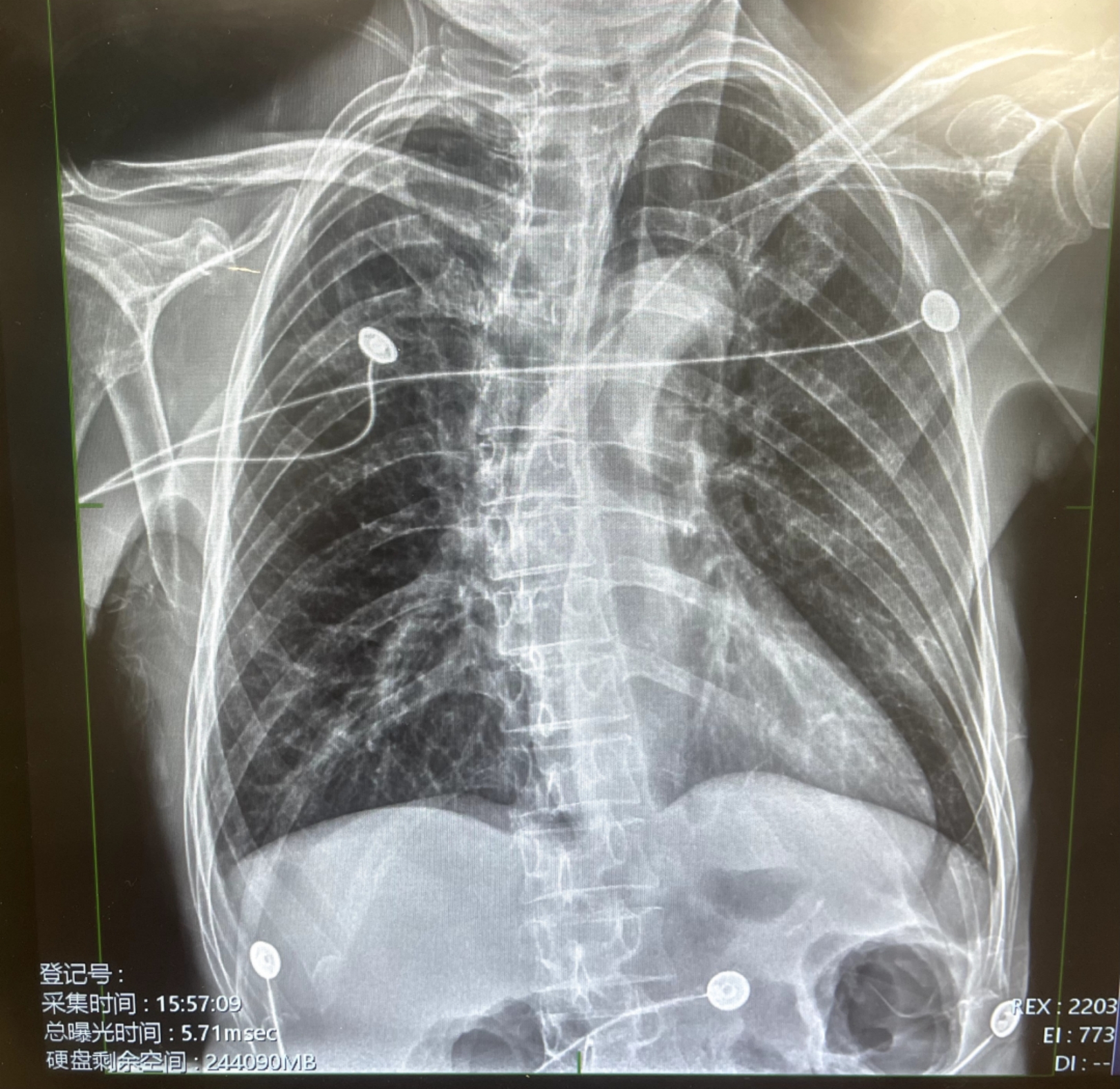 这是我院第一例PICC置管术,此次PICC置管技术难度较高,但在医院最强技术后盾支持下,肿瘤专科护士喻莉翠主动请缨,在刘国涛护士长的指导配合下,经患者贵要静脉穿刺,超声引导下成功送入导丝,导管送至预定刻度,封管贴膜固定,一气呵成顺利完成我院第一例PICC置管术。放射科医师床旁胸片复核中心静脉置管位置准确无误。整个操作过程非常顺利,患者无任何不适,连连称赞我们的医护人员技术好、态度好、服务好。