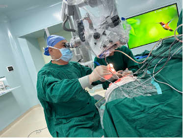 术前准备完善后,在麻醉科全力保障、心内科密切配合下,孟辉主任医师团队于2024年03月27日为患者行机器人引导下颅底深部肿瘤显微切除术,术中行面部激光注册与配准,误差控制在亚毫米级,全程实时跟踪定位患者病灶位置,结合手术显微镜在全程可视下实施精准的微创手术,得益于孟辉医生精湛的显微手术技术,仅4小时即顺利完成手术,肿瘤全切,神经及血管保护完好,总出血量不到200ml,整个手术过程精准、微创、高效。