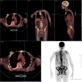 在来到四川泰康医院后,医生详细询问病情,建议患者做一个PET-CT进行更深入的检查。在核医学科的认真检查后,发现患者多项指标异常,检查结果提示前列腺癌(待病理确诊)伴全身多发骨转移及纵隔、肺门淋巴结转移可能。建议行病理穿刺明确诊断。