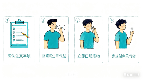 按序收集完6个采气袋的气体后,送往门诊2楼消化内镜中心。