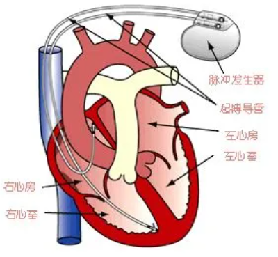 心脏起搏器是一种植入于体内的电子治疗仪器,通过脉冲发生器发放电脉冲,通过导线电极的传导,刺激电极所接触的心肌,使心脏激动和收缩,从而达到治疗由于某些心律失常所致的心脏功能障碍的目的。