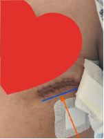术中胸腔镜下对断裂、错位的肋骨进行了复位及牢固的固定;术后复查肋骨CT见肋骨内固定位置合适、固定牢固(见图五);患者术后伤口恢复良好(见图六),已顺利出院。